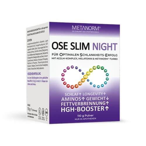 The OSE SLIM NIGHT METANORM®-TURBO, together with the AG2LM-Komplex, supports fat metabolism, among other things, by promoting HGH production.