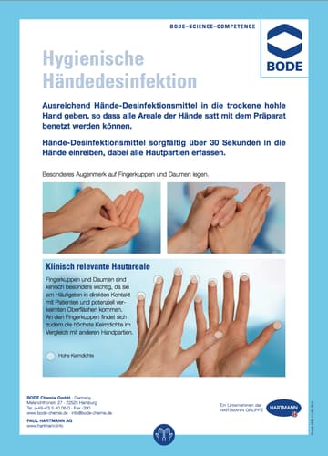 Rub Sterillium pure undiluted into dry hands, covering all skin areas. Pay special attention to fingertips and thumbs. Hands must be kept moist with Sterillium pure throughout the entire application time.