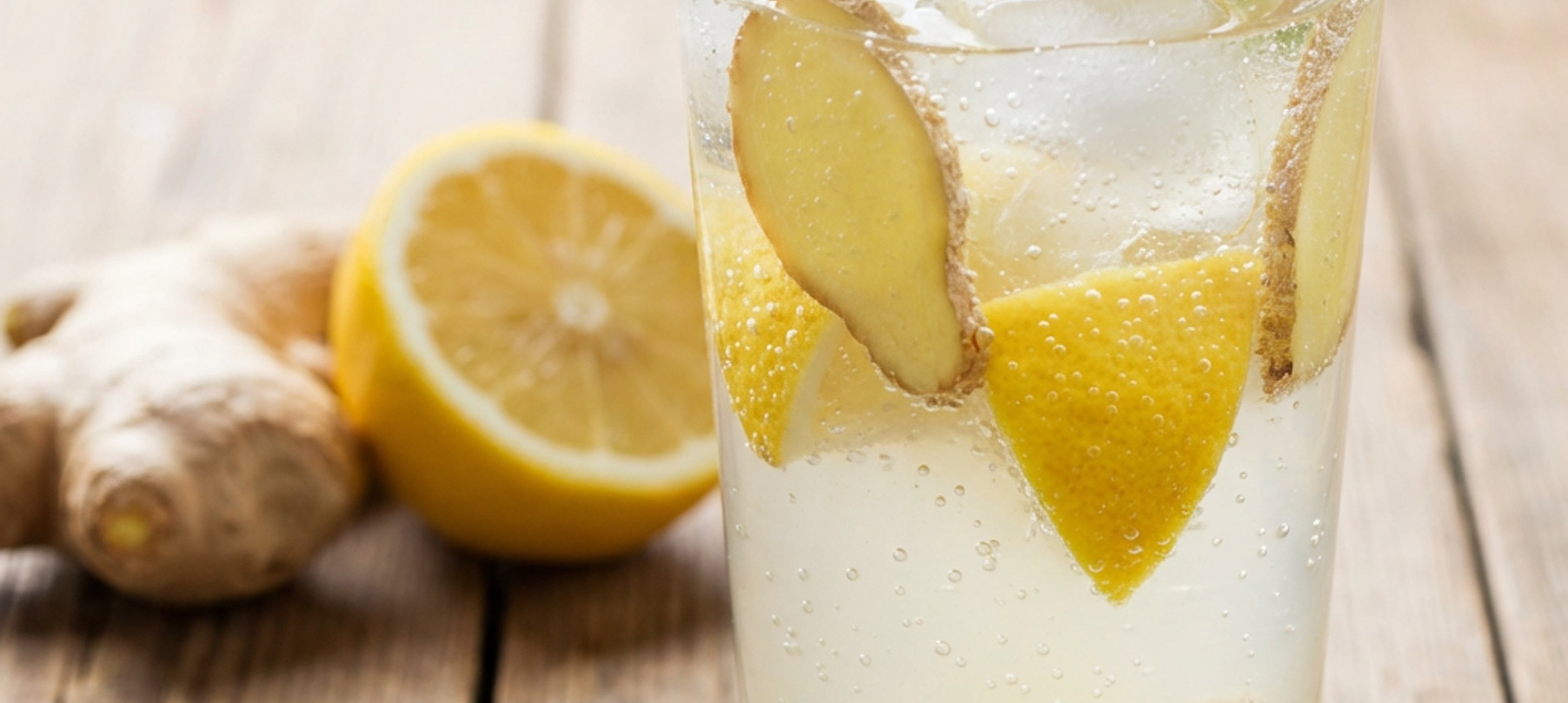 - 2Wash lemons with hot water, dry them, and cut into coarse cubes. Pour the ginger-sugar water with mineral water, add lemons, and serve in glasses with ice cubes.
