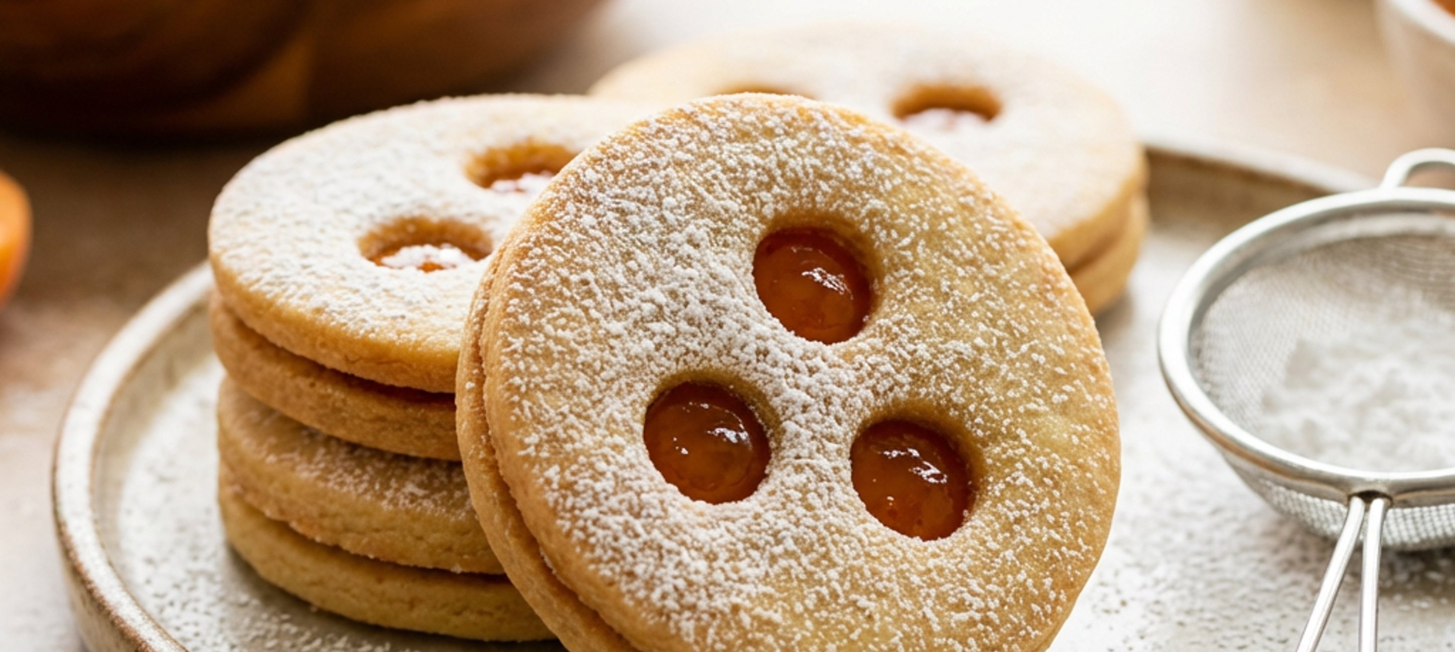 - 3Finally, dust the Linzer Eyes with powdered sugar.
