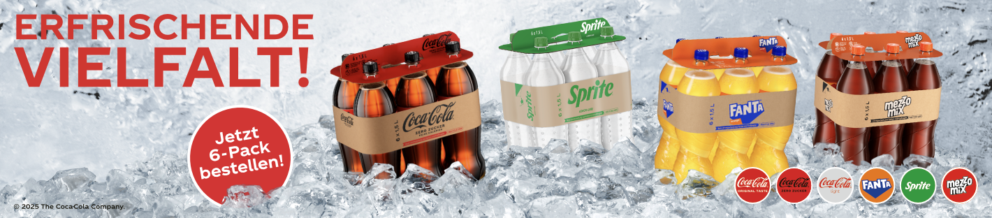 gurkerl.atMix & MatchMix & Match OffersGet a discount for buying bundlesPaper Towels and NapkinsKaufe 2 6-Packs deiner Wahl und erhalte 20% Rabatt.0 pieces in cart1479€Mix 2 for -20%Fanta Lemon 6x1,5l (EinwegPFAND)9 l1.64 €/lMax. 3 pcs0 pieces in cart1479€Mix 2 for -20%Mezzo Mix 6x1,5l (EinwegPFAND)9 l1.64 €/lMax. 3 pcs0 pieces in cart1499€Mix 2 for -20%Coca-Cola Regular 6x1.5l (disposable deposit)9 l1.67 €/lMax. 3 pcs0 pieces in cart1499€Mix 2 for -20%Coca-Cola Light 6x1.5l (disposable deposit)9 l1.67 €/lMax. 3 pcs0 pieces in cart1479€Mix 2 for -20%Fanta Orange Zero 6x1.5l (Disposable)9 l1.64 €/lMax. 3 pcs0 pieces in cart1499€Mix 2 for -20%Sprite regular 6x1,5l (EinwegPFAND)9 l1.67 €/lMax. 3 pcs0 pieces in cart1479€Mix 2 for -20%Fanta Mango 6x1,5l (EinwegPFAND)9 l1.64 €/lMax. 3 pcs0 pieces in cart1479€Mix 2 for -20%Fanta Orange 6x1,5l (EinwegPFAND)9 l1.64 €/lMax. 3 pcs0 pieces in cart1499€Mix 2 for -20%Coca-Cola Zero 6x1.5l (disposable deposit)9 l1.67 €/lMax. 3 pcs0 pieces in cart1499€Mix 2 for -20%Sprite Zero 6x1.5l (disposable deposit)9 l1.67 €/lShow all from Paper Towels and Napkins