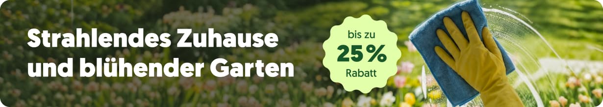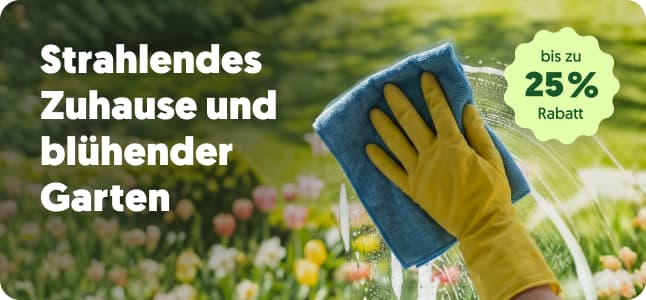 Die Sonne scheint und der Frühling ist endlich da! Egal, ob du dich in den großen Frühlingsputz stürzt oder die ersten Pflanzen der Saison setzt – wir haben das Beste für drinnen und draußen zusammengestellt. Dank unserer Rabatte bleiben dein Zuhause und dein Portemonnaie gleichermaßen glücklich. Von ökologischen Reinigern bis zur Blumenerde: Wir liefern alles ab 3 Stunden direkt vor deine Haustür.