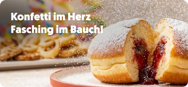 Feier Fasching ohne Stress. Wir liefern dir die besten Krapfen der Stadt, Party-Snacks und alles für dein Katerfrühstück direkt an die Tür. Licht aus, Spot an für die Narrenzeit! Egal, ob du als Superheld, Einhorn oder einfach als Genießer feierst – wir haben das passende Catering für deine Faschingsparty. Bei Gurkerl findest du alles, was die fünfte Jahreszeit noch bunter macht: von ofenfrischen Krapfen unserer lokalen Bäcker bis hin zu herzhaften Snacks, die jede Polonaise überstehen. Und weil wir wissen, dass die beste Party manchmal einen harten Morgen danach hat, liefern wir dir die Rettung in Form eines Katerfrühstücks gleich mit. Lehn dich zurück, setz die Maske auf und lass uns das Schleppen übernehmen. Gurkerl liefert, du feierst!