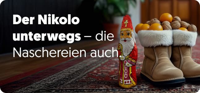 Kein Einkaufsstress, keine Schlangen. Wir liefern dir alles, was du brauchst ab nur 3 Stunden bis vor deine Tür. So bleibt dir genug Zeit, alles vorzubereiten… bevor jemand merkt, dass du den Nikolo fast vergessen hättest.