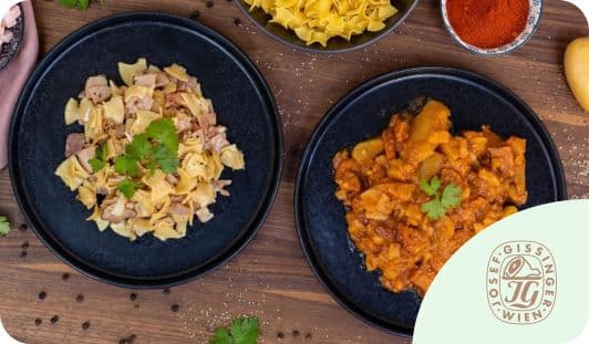 Wenn es schmecken soll wie daheim: Die fertigen Gerichte von Gissinger bringen Wiener Klassiker wie Schinkenfleckerl oder faschierte Laibchen direkt und unkompliziert auf deinen Tisch.