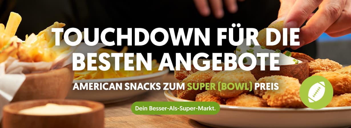 What is an absolute must for a successful Super Bowl evening? The right food, of course! Whether it's a bucket of chicken wings to share, beef patties for juicy hamburgers, or hot dogs to fill yourself. We deliver American specialties at top prices within hours right to your doorstep.