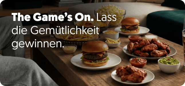 Wir haben für dich die exklusivste Super Bowl-Auswahl der Stadt zusammengestellt. Die besten Süßigkeiten, eiskalte Drinks & salzige Snacks direkt zu dir – da kommt Stadionstimmung auf! Und was darf nicht fehlen? - Super zarte Wings und Ribs, dazu saftige Burger Patties und regionale, ofenfrische Buns für den perfekten Burger.